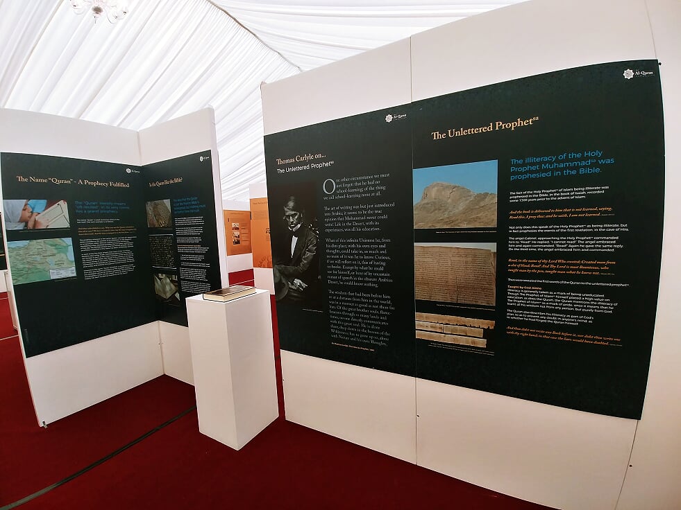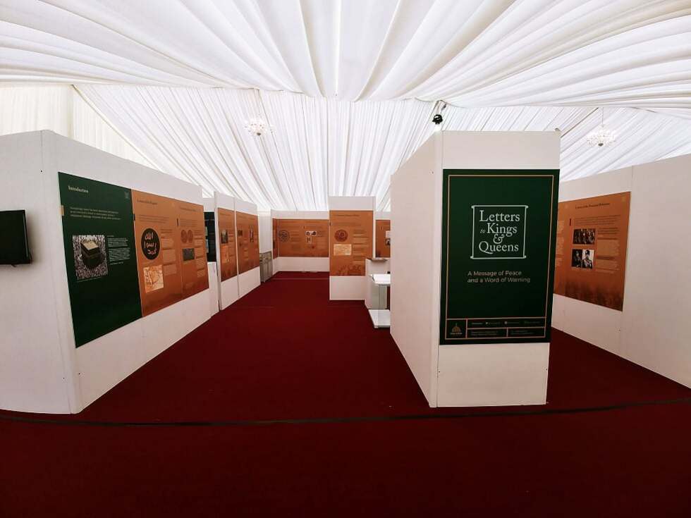 La exposición en cuestión, tiene lugar este año desde el 2 al 4 de agosto en el Jalsa Salana Hadeeqatul Mahdi (reunión anual formal de la comunidad musulmana Ahmadiyya) en Oakland Farm, ubicado en la localidad de Alton en el condado de Hampshire (Reino Unido). Fue organizada por el Departamento de Difusión Nacional de la Comunidad Ahmadiyya en el Reino Unido y su dirección corrió a cargo del Sr. Ibrahim Ikhlaf. Se trata de una de las muchas exhibiciones presentadas en la convención musulmana más grande de Gran Bretaña que incluye la exposición de la Sábana Santa de Turín, la exposición de Jesús en la India y la exposición del Corán. Pudieron observarlas muchos de los cuarenta mil asistentes, entre los que se contaban un gran contingente de líderes no musulmanes, diplomáticos, políticos y clérigos. La exposición “Cartas a Reyes y Reinas: Un Mensaje de Paz y una Palabra de Advertencia” se hizo eco de la pregunta en el corazón de la Jalsa 2019: “¿El Islam es una religión que promueve el terror o la paz?” Lo expuesto no podría haber respondido mejor a la pregunta retórica, basándose en “Los Pactos del Profeta con los Cristianos del Mundo” de John Andrew Morrow. Por medio del propio Mensajero de Dios se demostró que el Islam es una religión de paz.